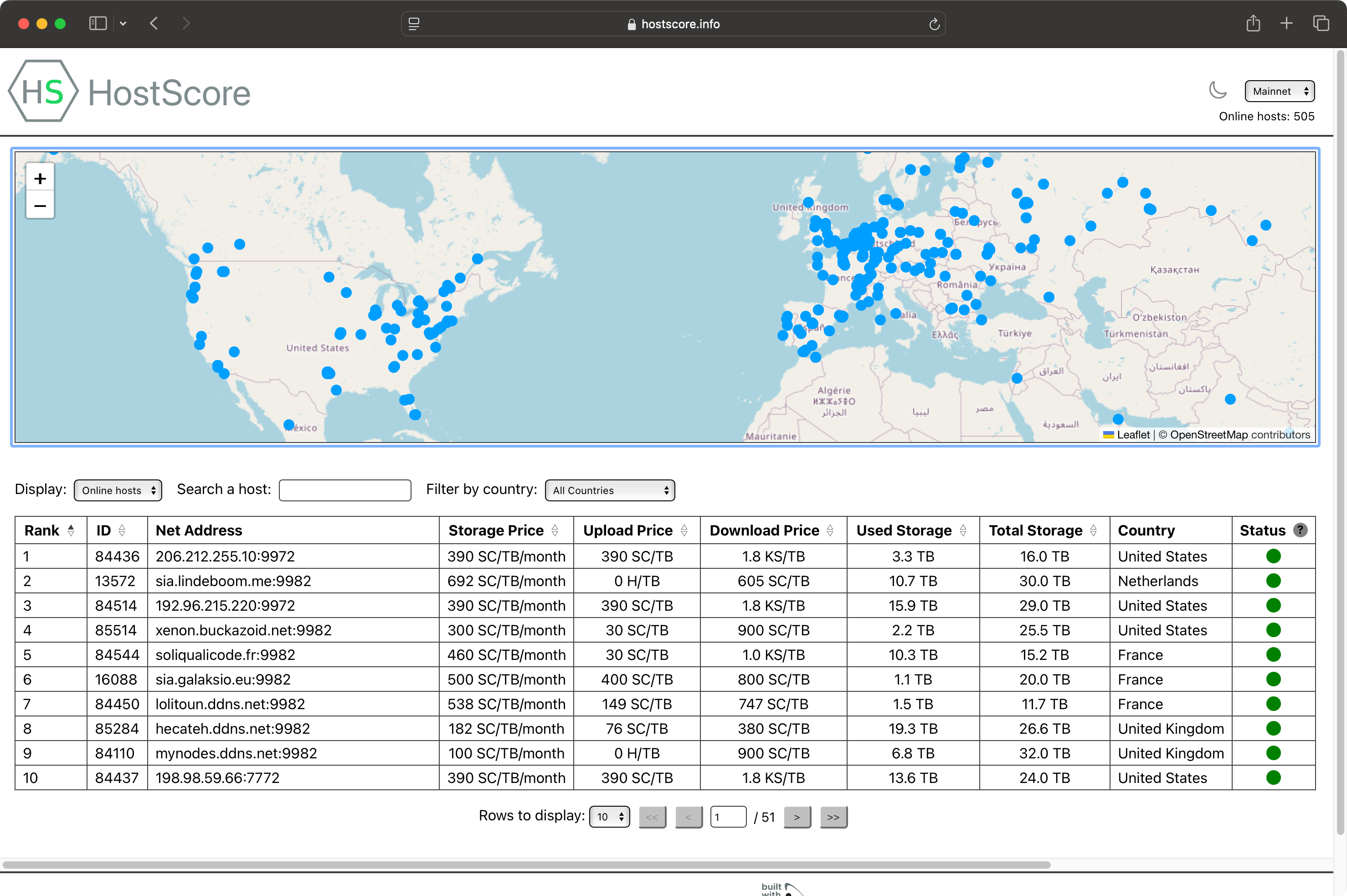HostScore is a host scoring and benchmarking platform for the Sia data storage network.